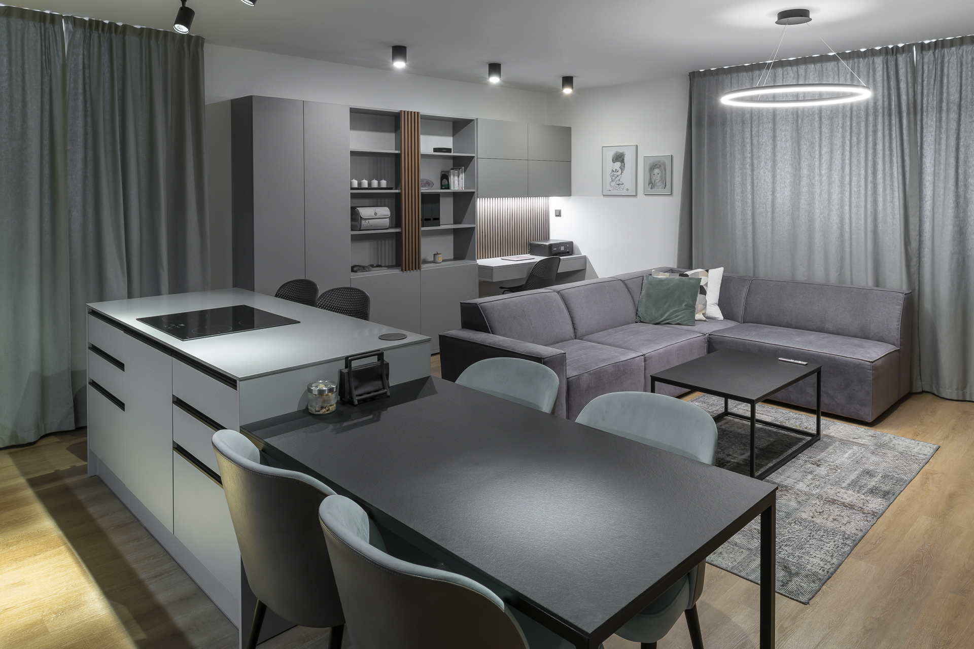 Matný povrch se vyznačuje absencí odrazu světla, což mu dodává uklidňující a decentní vzhled. Díky struktuře povrchu méně vynikají nedokonalosti jako škrábance nebo drobné nerovnosti, což oceníte zejména v domácnostech s dětmi nebo domácími mazlíčky. Matné povrchy jsou dostupné v širokém spektru materiálů – od laminátu přes lakované MDF až po přírodní dřevo či kámen.